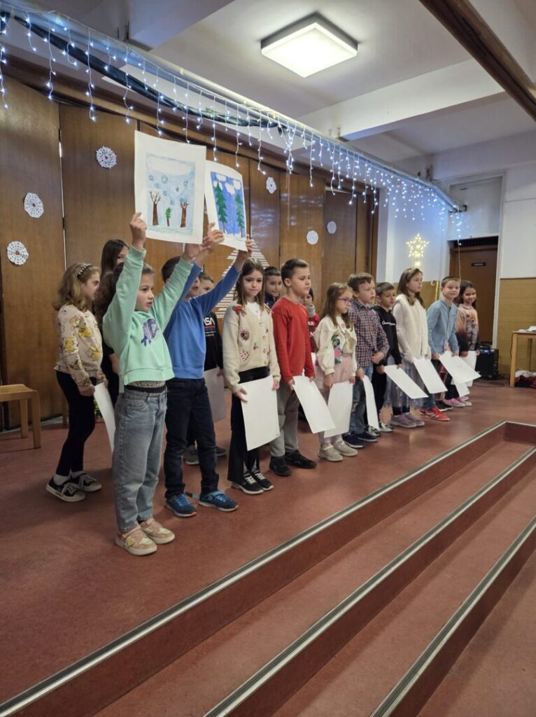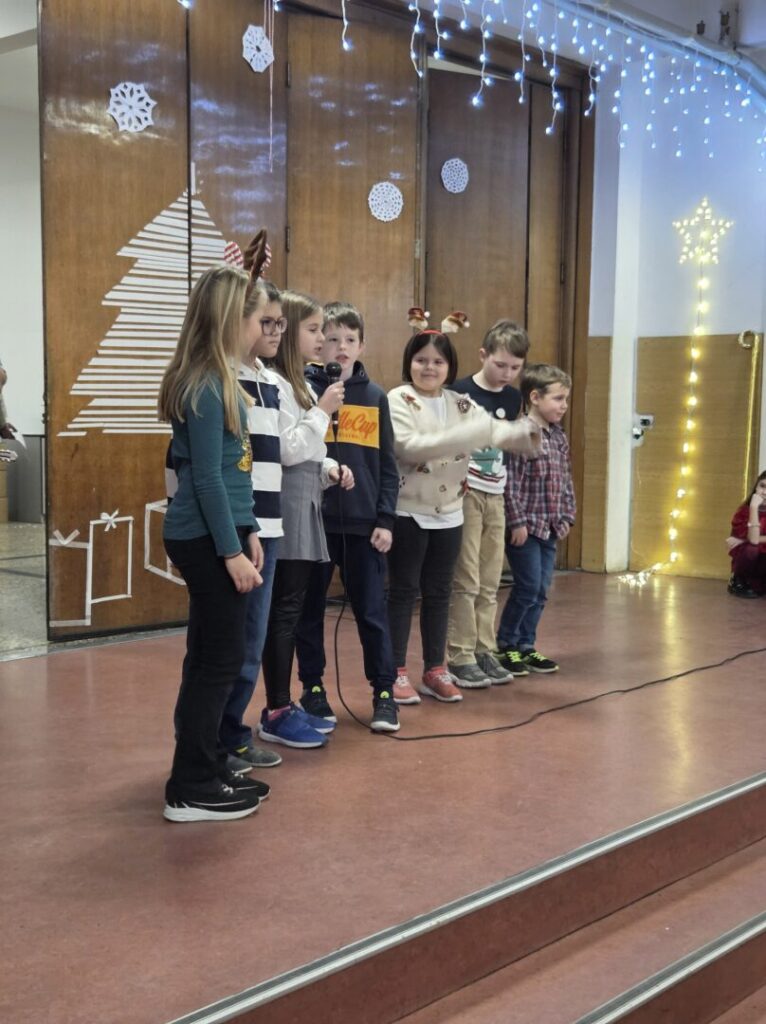 Učenici i učiteljice razredne nastave bili su vrlo vrijedni i pripremili su božićnu priredbu. U utorak, 23.12. 2025. u školi su nas razveselili pjesmom, plesom, igrokazima i recitacijama. Učenice 4.razreda izvele su plesnu točku s ribonom, a učenici 2.a, 2.b, 1.a/c, 2.c, 1.a/b izveli su božićne recitacije. Pjesmom su nas zabavili učenici 2.c, 3.c i 4.a razreda. Božićne igrokaze uprizorili su učenici 2.a, 4.b i 3.a razreda, dok su nam učenici 4.c pokazali folklornu točku. Priredba je bila vesela, šarena i maštovita. Hvala učenicima na sudjelovanju i učiteljicama na trudu i pripremi.