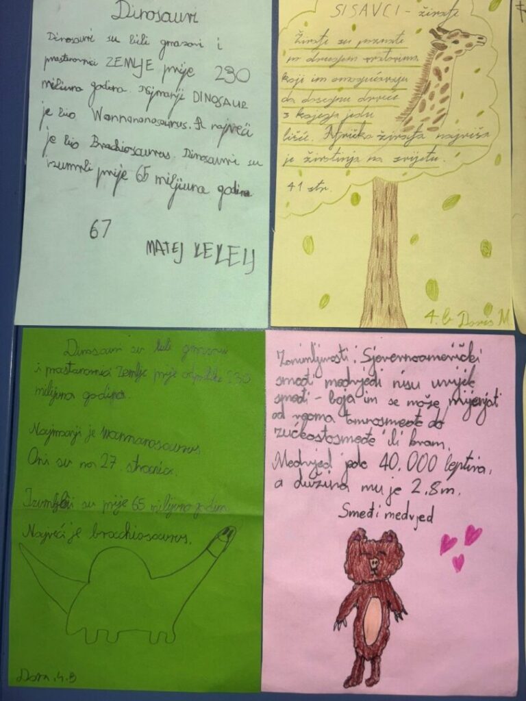 U petak, 30. siječnja, učenici 4.b razreda posjetili su školsku knjižnicu gdje je održana nastava o enciklopediji. U sklopu nastave učenici su naučili kako se traže pojmovi u enciklopediji te su se upoznali sa sadržajem i kazalom. Stečena znanja primijenili su u praksi tražeći pojmove, crtajući pronađene sadržaje te ih predstavljajući jedni drugima.